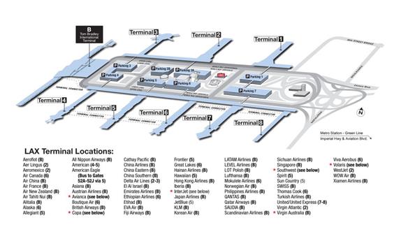 國際航班飛LA都是從Tom Bradley International Terminal降落。LAX一共有9個(gè)航站樓,由一個(gè)U型的通道連接,所以可以選擇步行或者乘坐巴士到其他的terminal。一般機(jī)票上會顯示轉(zhuǎn)機(jī)航站樓在哪里。