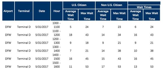 達(dá)拉斯機(jī)場入關(guān)時(shí)間: