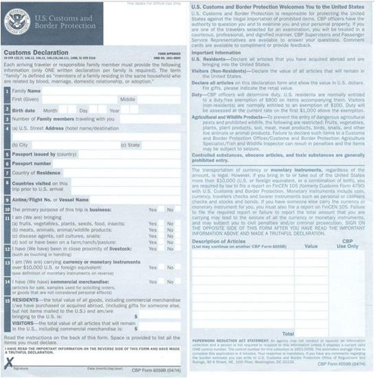 這張表空姐會在飛機(jī)上發(fā)給你,只要按照護(hù)照、DS-2019、I-20、機(jī)票上面的信息填寫就好了,注意10-14題基本上都是要畫NO的,也要注意千萬不要帶10-14里面提到的內(nèi)容來美國。
