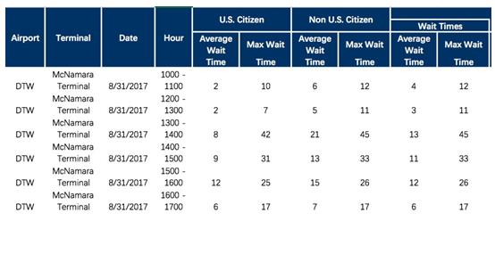 底特律機(jī)場入關(guān)時(shí)間: