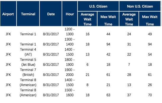 肯尼迪機(jī)場入關(guān)時(shí)間: