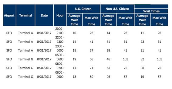 舊金山機(jī)場入關(guān)時(shí)間: